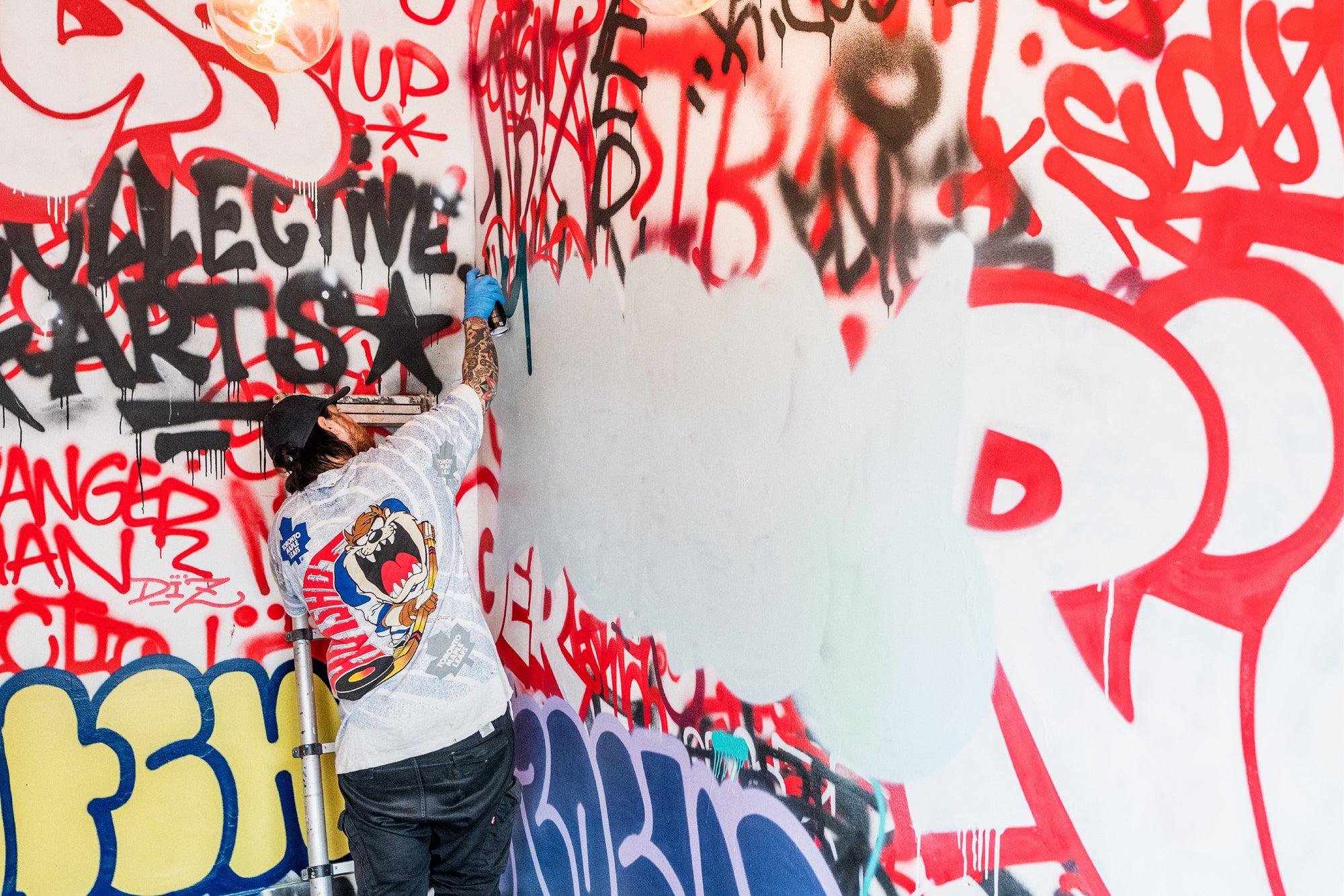 Our Collective Arts Toronto Taproom is transforming to include a reimagined creative/community hub. Almost every square inch of wall space will now be adorned with gorgeous murals created by a roster of talented artists including: Emily May Rose x Hungr, Brianne Burnell, Avril Wu, Bruno Smokey, Robert John Patterson, Dave Setrakian, Jieun Kim x Andy Friesen, and Timmy Drift. Take a look at some of our work-in-progress shots to get you stoked for the big reveal!