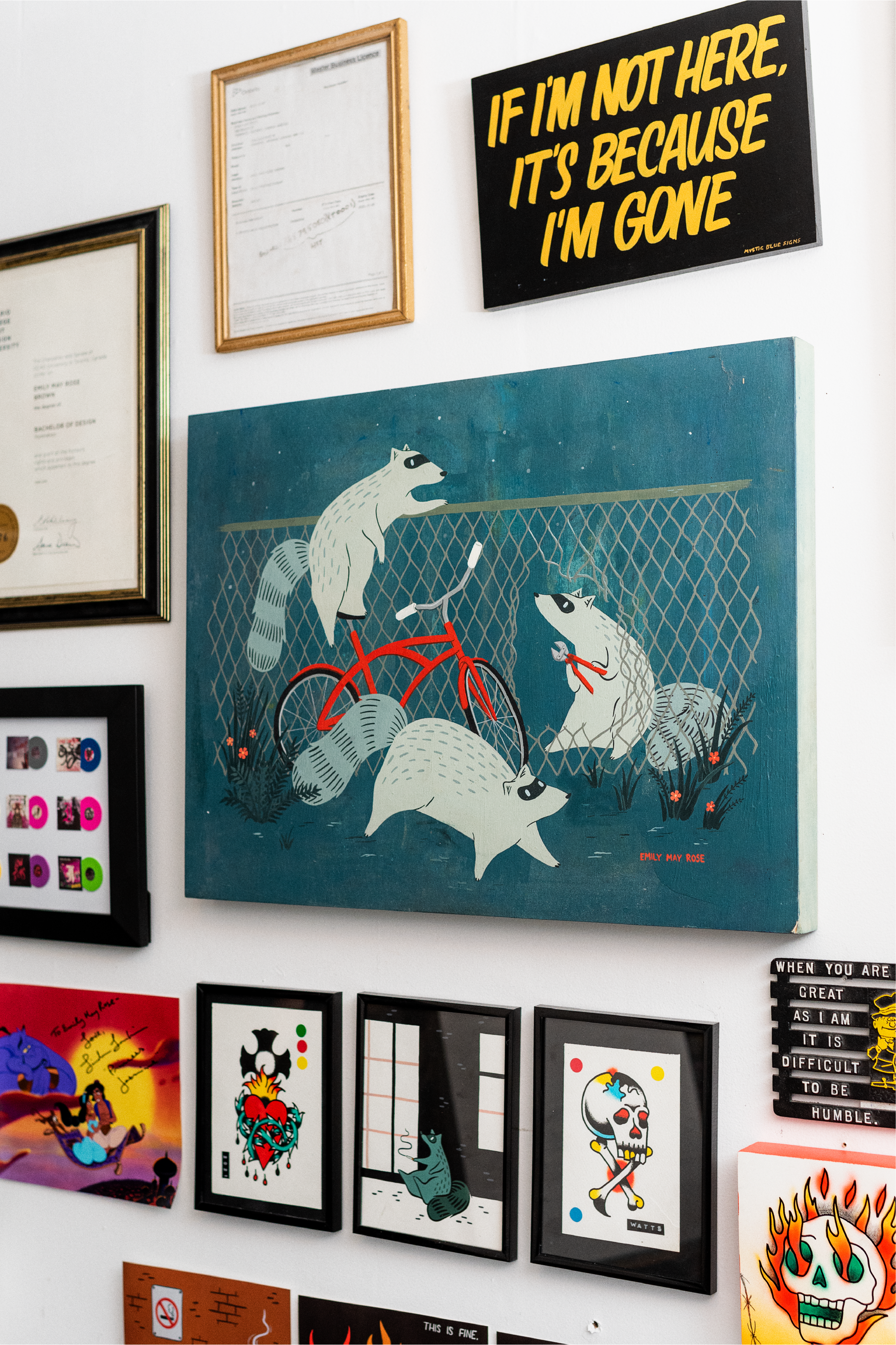 Based in Toronto, Emily May Rose has become famous for her iconic cast of returning raccoon characters that bring levity to living in the big city. From murals and editorial illustrations to apparel design and gallery settings, Emily's work is always pushing boundaries and levelling up her creativity.